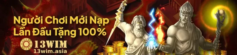 - Tặng 100% giá trị nạp đầu tiên – mở đầu hành trình cá cược hấp dẫn với vốn chơi nhân đôi tại đăng ký 13WIM.